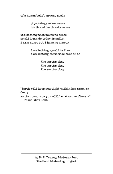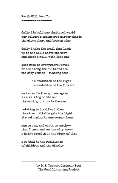 This summer, I took a five-week course from The Good Listening Project to learn the craft of listening poetry: poetry that arises from deep listening in a one-on-one conversation.